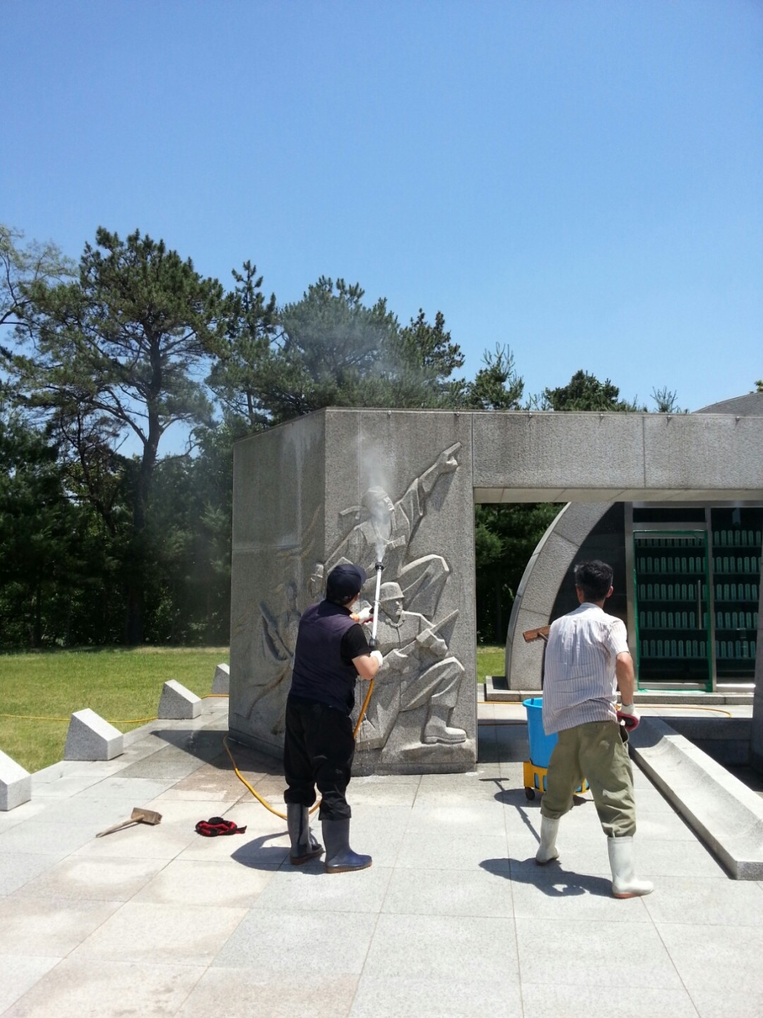 현충탑 청소중 사진